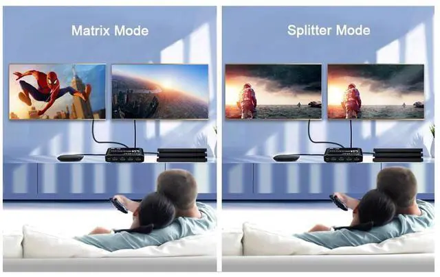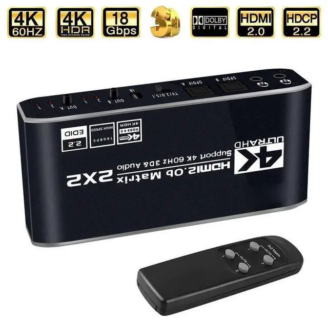HDMI Matrix 2x2, 2 in 2 Out Matrix Switch HDMI Video Switcher Box IR Remote Control
