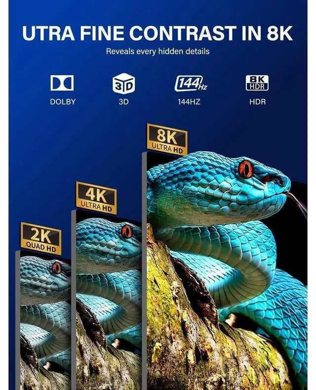 8K Ultra HD Resolution: Supports resolutions of 8K@60Hz, 4K@120Hz, 1080P@240Hz, provides you with a transmission rate of up to 48Gbps and is backward compatible with all previous HDMI standards.