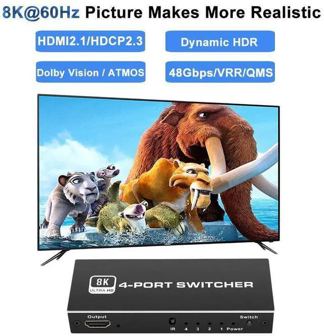 HDMI-compatible Switch: HDMI 2.1 and HDCP 2.3, 48Gbps transmission speed, This HDMI-compatible switcher allow you to connect three HDMI-compatible source to one HDMI-compatible display.