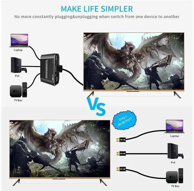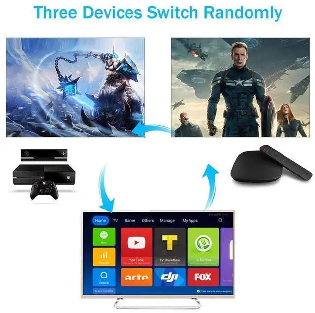 HDMI Switch is a 3 port HDMI 2.0 4K HDMI switcher for your latest gaming and home theatre setup. It supports 3 HDMI inputs and 1 HDMI output, allowing for HDMI 2.0 and HDCP 2.2, along with 4K Ultra HD and compatibility on all HDMI.
