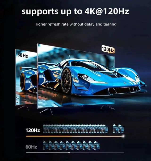 [HDMI 2.1 Switch 3 In 1 Out]: This HDMI Switch easily transfers video and audio from 3 HDMI devices to 1 HDMI display. Plug and play, just connect your HDMI sources to watch the show you want on the big screen. The HDMI switch witch remote support native 4k quality and a high refresh rate of up to 120hz, eliminating lag and motion blur, bringing your games and action movies an unprecedented silky experience.