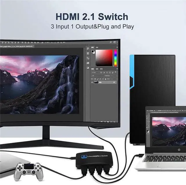 HDMI 2.1 Switch : 3 HDMI ports in and 1 HDMI out for various HDMI devices, HDMI switcher 3 ports can work with most devices with standard HDMI interface. Input: PC, Laptops, Xbox 360, PS3/PS4/PS5, Roku Express, Amazon Fire TV Stick, Blu-ray DVD, etc; Output: Full HD TVs, projectors, monitors and more.