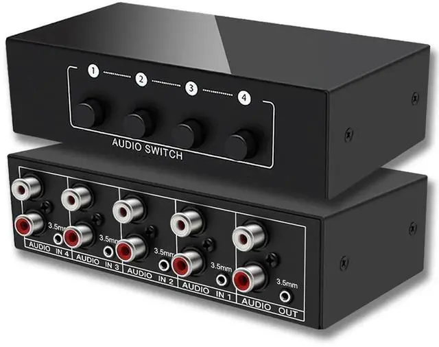 [4 in 1 out Switcher]FlyroadUp 4-way audio switch can easily switch between four stereo audio source such as turntable, MP3, DVD player, game consoles... to one headphone/amplifier/speaker while maintaining pristine sound quality