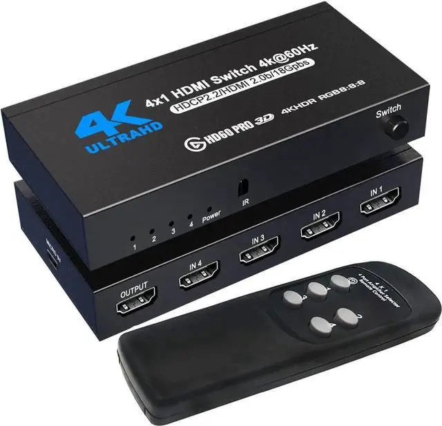 Wide Device Compatibility and Ultra HD Resolution: This 4 port HDMI switch can compatible with partly HDMI device such as Amazon fire Stick, Apple TV, LE TV, PS3/ 4/ 5 Vedio Games, This 4K 60Hz HDMI Switch supports Ultra HD resolution, can work for standard HDMI V2.0 and HDCP V2.2 such as 4K x 2K@60Hz/ Full HD 1080P/ Full 3D 1080P/ HD audio/ HDCP/ 480P/ 576P/ 720P/ 1080P/ 1080p 3D/ 4K@60Hz.