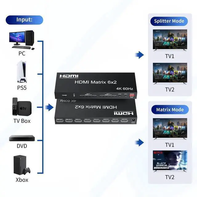 5)When using with HDMI 2.1 source and Display,pls set the resolutions no more than 4K@60Hz manually.Otherwise, there is no signal