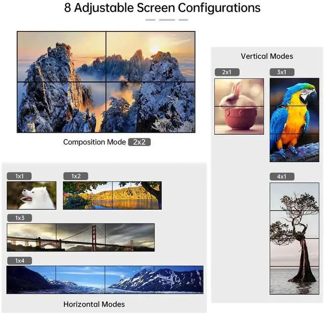 ![Alt view image 7 of 7 - MT-VIKI 4K Video Wall Controller 2X2 with 2 HDMI Input+ 4 HDMI Output, TV Wall Controller 4K30Hz Support Point-to-Point Display + 180° Degree Rotate + 3.5MM Audio [Non-Stretching & Non-deforming]](https://c1.neweggimages.com/productimage/nb640/C1DRS250917083FUYDB.jpg)