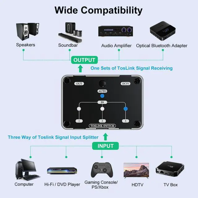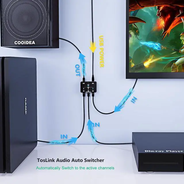 Support Automatic Switch : the spdif toslink switcher automatically detects whether each channel has audio signals, and automatically switch to other active channels