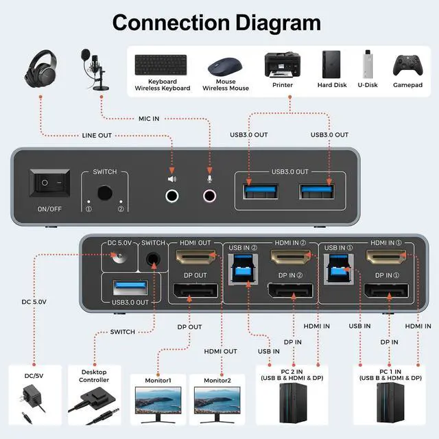 PC 2 :USB IN+DP IN+HDMI IN(the ports on the same host)+DP OUT