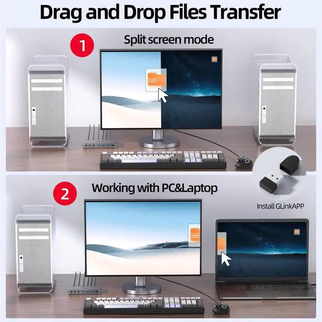 NOTE - Please install "GLinkApp" to urtilize the Data intercopy feature. Only USB 3.0 or above HOST interface can use the Data Intercopy feature. After install "GLinkApp",the product does support simultaneously using a mouse and keyboard between dual hosts.