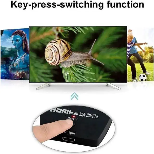 This 3 input to 1 output HDMI switcher has the key-press-switching function and has the inteligent function. The 3 input to 1 output HDMI-compatible switcher routes high definition 4k@60Hz video and digital audio from any one of the 3 sources to display unit. Three inputs accommodate the simultaneous connection of high definition video sources, such as HD player, Blu-ray player, Set Top Box, P&S3, Xbox360 etc. The output sends the high definition audio/video signals to a high definition display like HDTV.