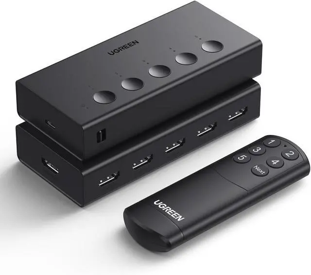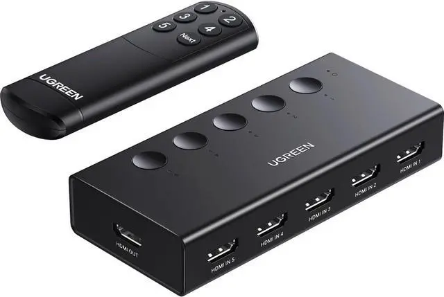 UGREEN HDMI Switch 5 in 1 Out 4K@60Hz, HDMI Splitter with Remote 5 Port Switcher Selector Box Support 3D CEC HDR HDCP2.2 Compatible with PS5/4/3 Xbox Nintendo Switch Roku TV Fire Stick Black