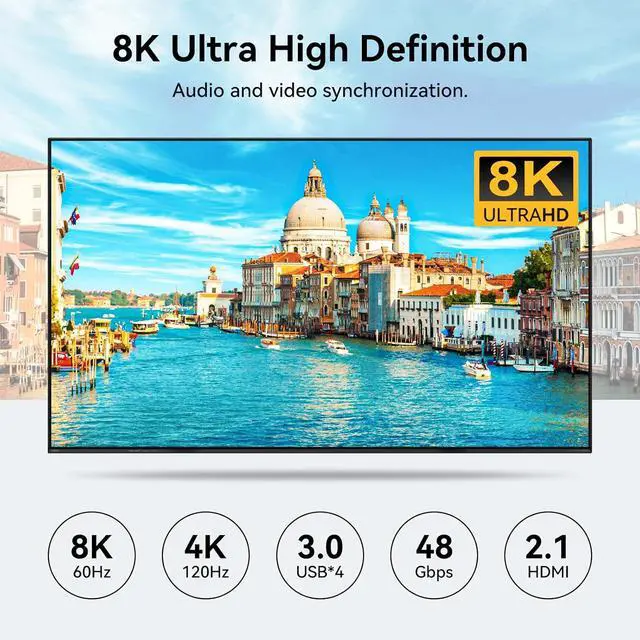 With support for ultra-high resolutions up to 8K@60Hz and 4K@120Hz, this KVM switch delivers exceptional visual clarity and smooth performance across multiple displays. It supports both extended and duplicate display modes, enabling flexible monitor configurations for professional tasks, multitasking, or specialized work environments.
