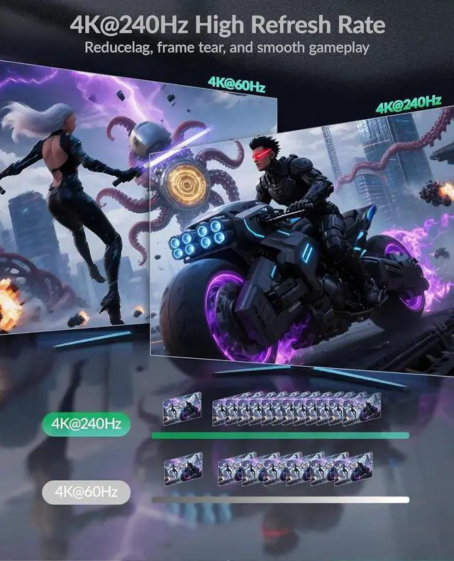 8K HDMI Switch & High Refresh: Engineered with advanced HDMI2.1 technology, this HDMI switch supports breathtaking resolutions including 8K@60Hz and 4K@240Hz, along with backward compatibility for 4K@120Hz and lower.