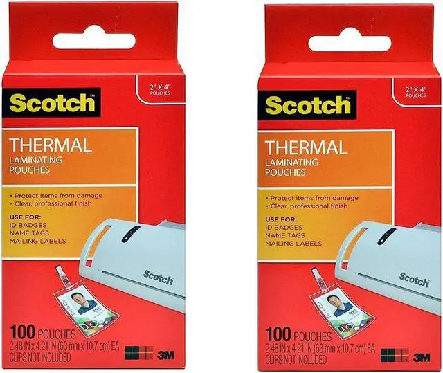scotch thermal laminating pouches, 2.4 x 4.2-inches, id badge without clip, 2 pack, 200-pouches total (tp5852-100)