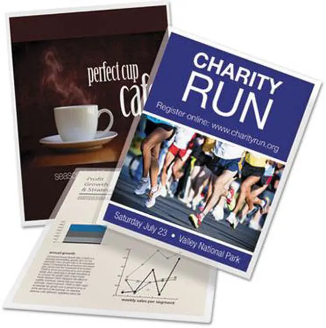 Thermal laminating pouches provide a clean and crisp look for professional results. Brilliant clarity shows off the details of text and colors in images.