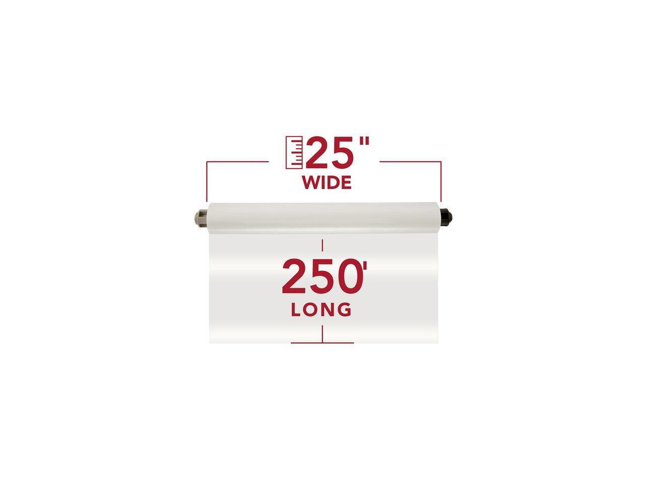 The 1.5 mil thickness provides protection while retaining flexibility. Each roll is 25" x 500' and is wound on a 1" core. Thick construction protects papers while remaining flexible.