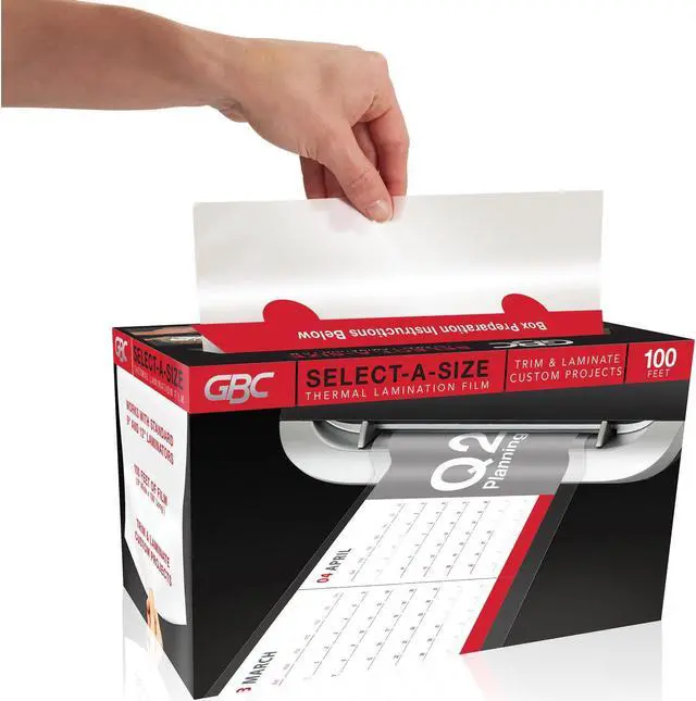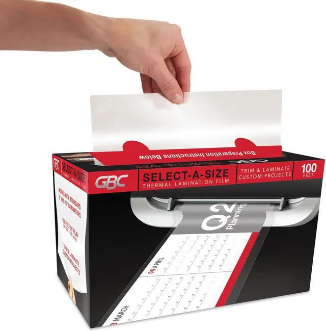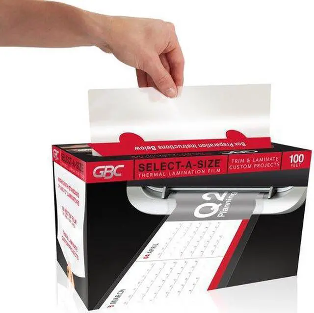 The ready-to-use box comes with a perforated top for easy cutting and film storage. Choose the amount of pouch required through the top of the box and cut it with the included trimmer. Lamination roll is sealed on one edge so its easy to insert and align materials into the pouch. A carrier with instructions is also included to help guide the unsealed edge of the pouch when inserting it into a laminator. Compatible with most 9" thermal pouch laminating machines including GBC Fusion Laminators. Crystal clear thermal lamination pouch results in a glossy finish. Supply Format: Pouch; Thickness/Gauge: 3 mil; Color(s): Clear.