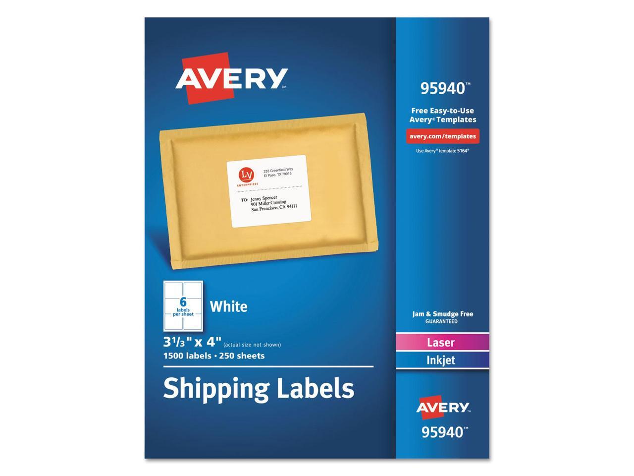 Avery White Shipping Labels Laser/Inkjet 3 1/3 x 4 White 1500/Box 95940