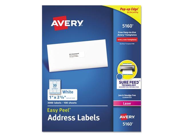 Avery Easy Peel Laser/Inkjet Address Labels 1 x 2 5/8 White 15000/Box 95915