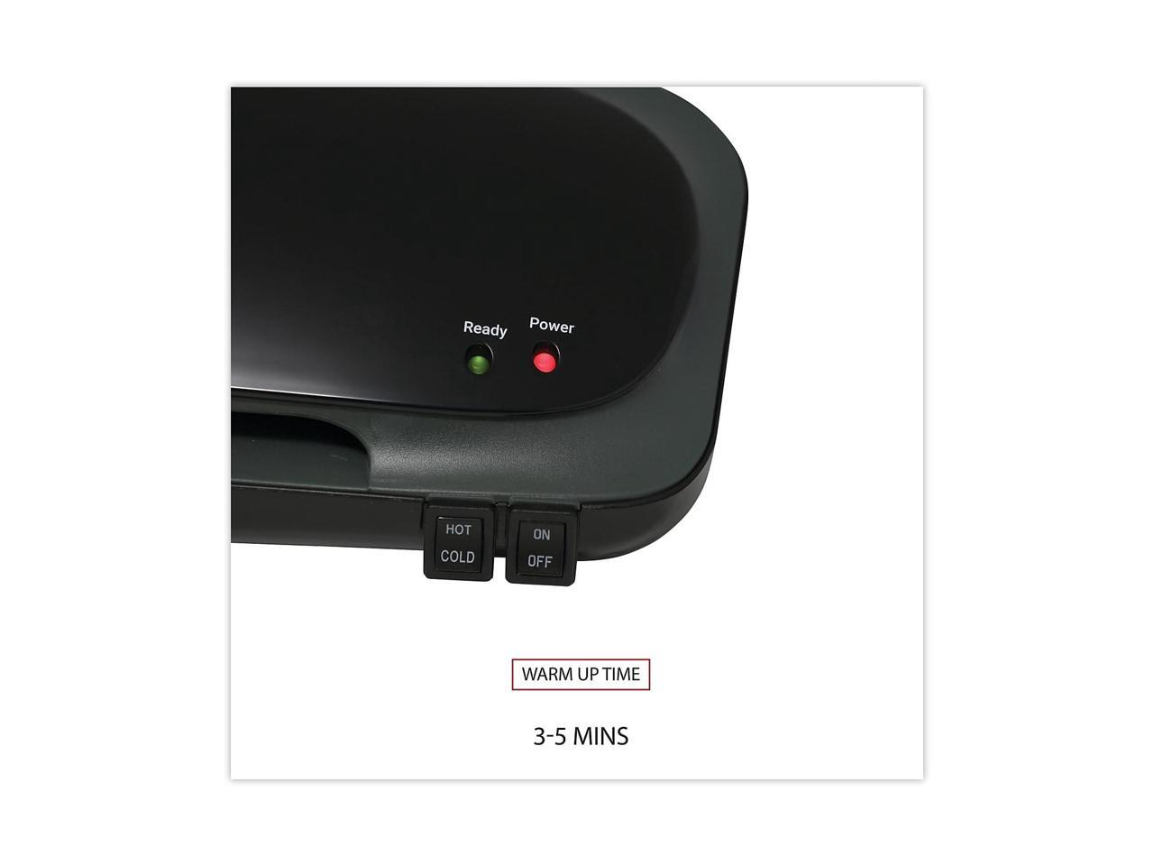 This machine is compatible with 3-5 mil hot lamination pouches and self-adhesive cold lamination pouches.