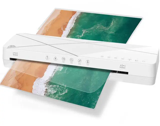 Thermal Laminator Machine A3 Wide for Photoes,Films,Certification,Hot /Cold Laminate,355mm/min,1-2 Min Preheat,Temperature Control,ABS Button for Rereat,Home,Office, School Supplies;White,110V,400W