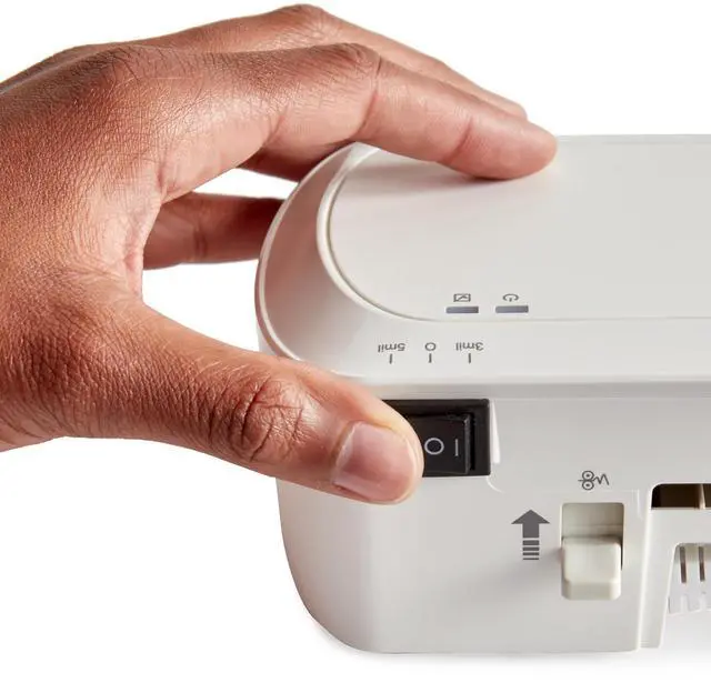 For use with 3-mil- or 5-mil-thick pouches, the machine offers a 3-mil heat setting for everyday items and a 5-mil heat setting for thinner papers.
