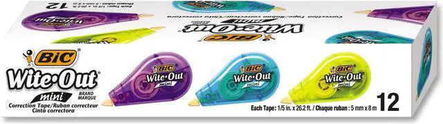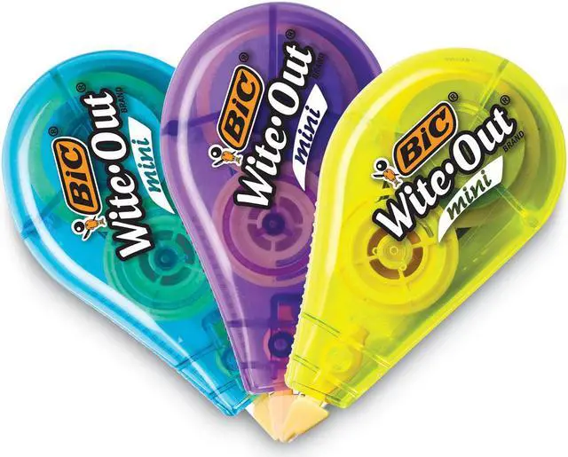 Wite-Out Mini is a compact correction tape suitable for lefties and righties. The tape applies dry, so you can write over it instantly. Translucent dispenser lets you see how much tape remains. Wite-Out Mini offers approximately 26.2 feet of white correction tape per dispenser.