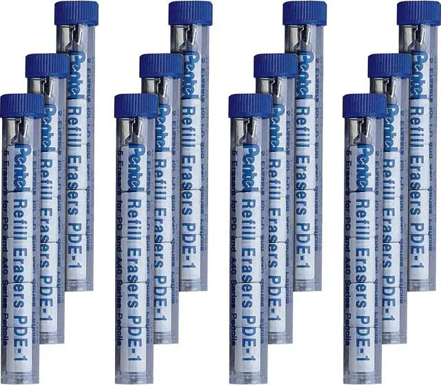 Large eraser refills keep your mechanical pencils fully functional. You can continue to write and erase with the same instrument. Refill fits the Pentel Quicker Clicker, Jolt, EZ No. 2, Cometz, Clarius, Forte series, Techniclick series, .e-clic series, Cool Lines, Planetz, Carnival, Champ and Icy.