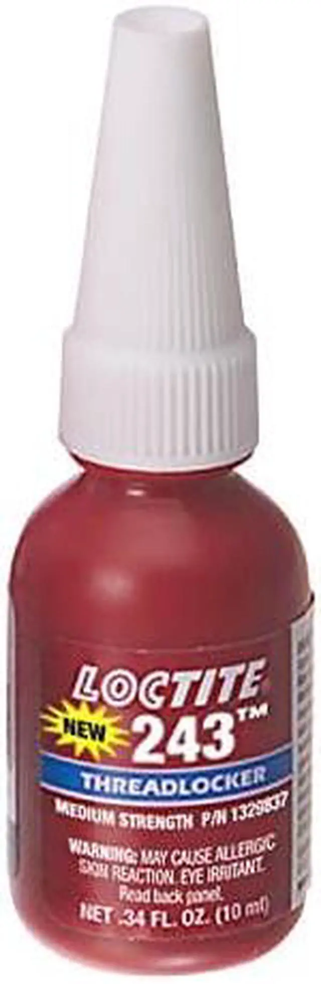 LOCTITE® 243 is a general purpose threadlocker of medium bond strength. This threadlocker secures and seal bolts, nuts and studs to prevent loosening due to vibration. The product works on all metals, including passive substrates such as stainless steel, aluminum and plated surfaces. It is proven to be tolerant of minor contamination due to industrial oils, e.g. motor oils, corrosion prevention oils and cutting fluid. Features: Prevents loosening on vibrating assembes, e.g. pumps, gear boxes or presses Works on all metals, including passive substrates (e.g. stainless steel, aluminum, plated surfaces) Proven to tolerate minor contamination by industrial oils, e.g. motor oils, corrosion prevention oils and cutting fluids Permits disassembly with hand tools for servicing P1 NSF Reg. No.: 123000 This listing is for pack of 10. UNSPSC 31201600 Type Primerless Blue Threadlocker Sub-brand 243™ Model 1329837 Color Blue Size 10mL Bottle