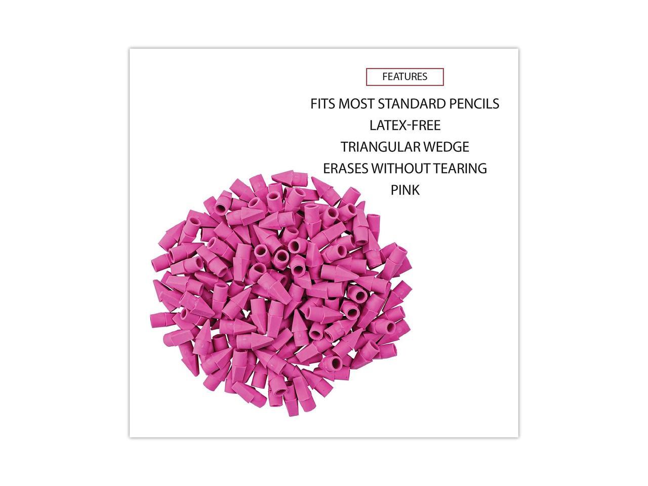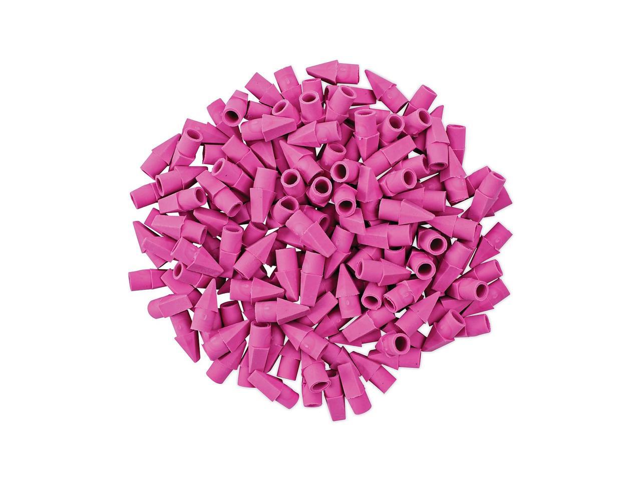 Soft and latex-free pink end-cap pencil erasers.