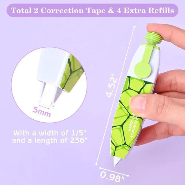 The correction tape measures 0.2 inches in width and 236 inches in total length for your correction needs.