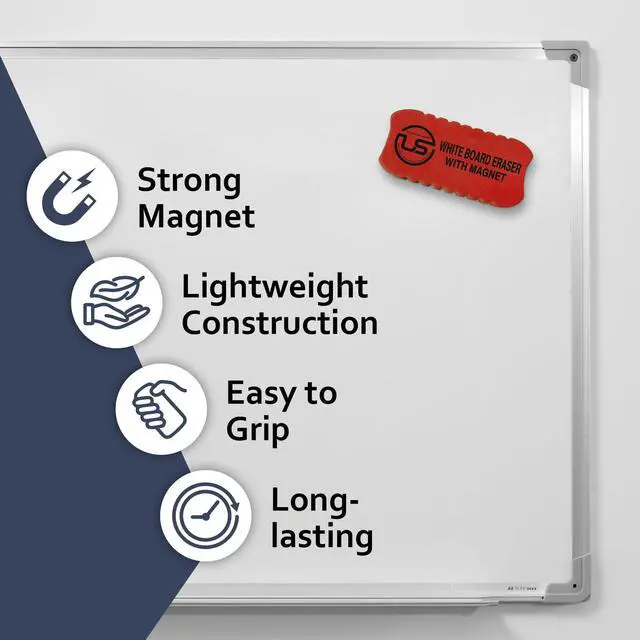 Magnetic Whiteboard Eraser 2-Pack Never lose your eraser again! Strong magnet sticks to any steel-backed whiteboard for easy access.
