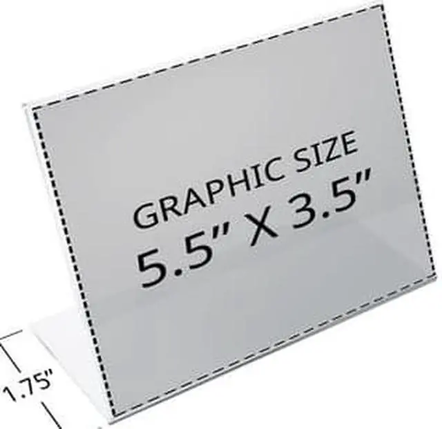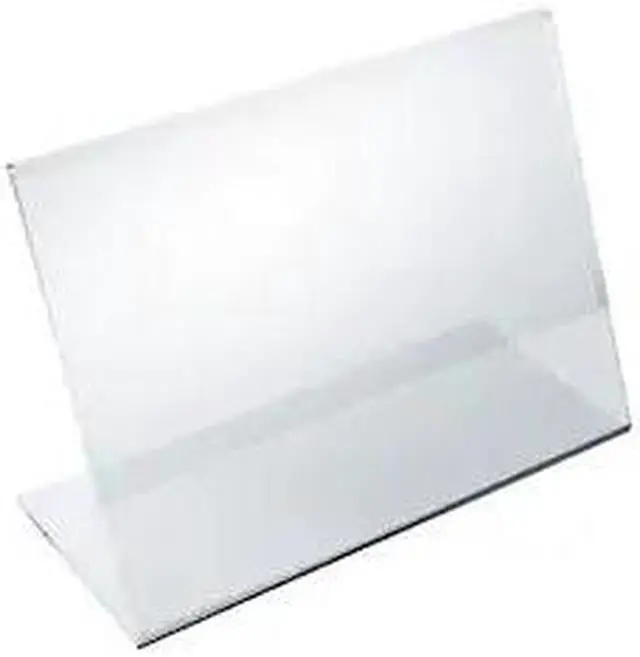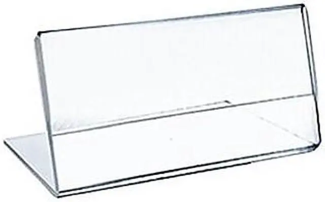Azar Displays Horizontal L-Shape Sign Holders is made of acrylic to provide durability and strength. It is available in a size of 3.5 x 5.5 inches and comes in 10/pack.