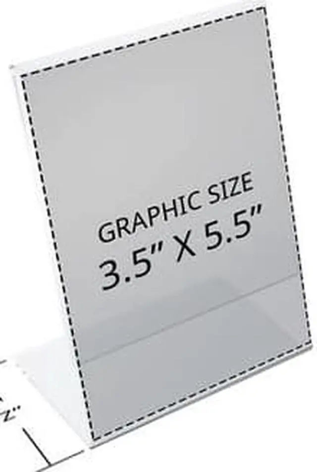 Azar Displays Vertical L-Shape Sign Holder is made of acrylic to provide durability and strength. It is available in a size of 5.5 x 3.5 inches and comes in 10/pack.