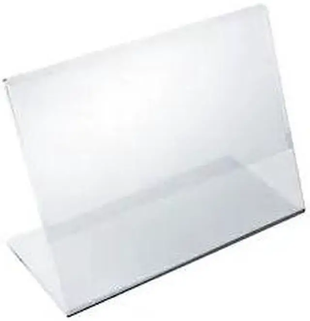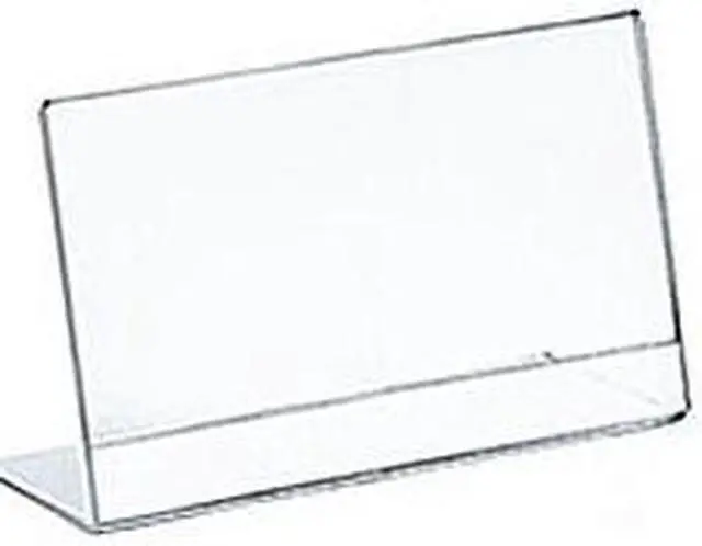 Azar Displays Horizontal L-Shaped Sign Holder 10/Pack is constructed of clear acrylic for easy viewing the inserted display material. It comes in a slant back design for use as a tabletop display or as a picture frame.