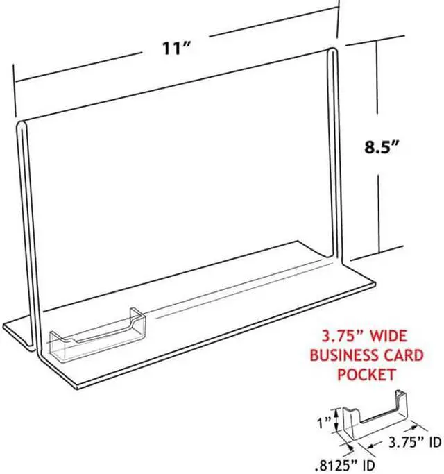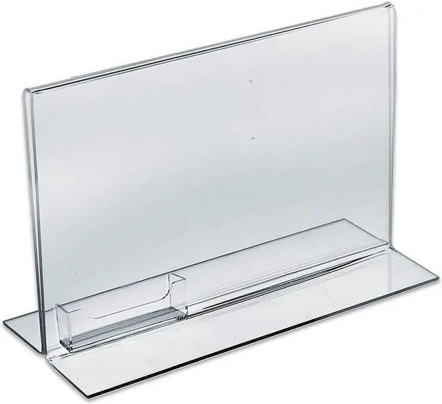 Advertise on your product racks or tables with the stylish Azar Displays Stand Up Acrylic Sign Holder with Business Card Holder. This sign, and business card holder stands steadily on any flat surface and can be used to display promotional information on counter tops. Made from top quality acrylic for durability and ease of use, it is double sided and provides visibility on both sides. This sign holder is perfect for displaying signs, and business cards on desk tops or checkout counters at restaurants, cafes or stores for optimal customer visibility.