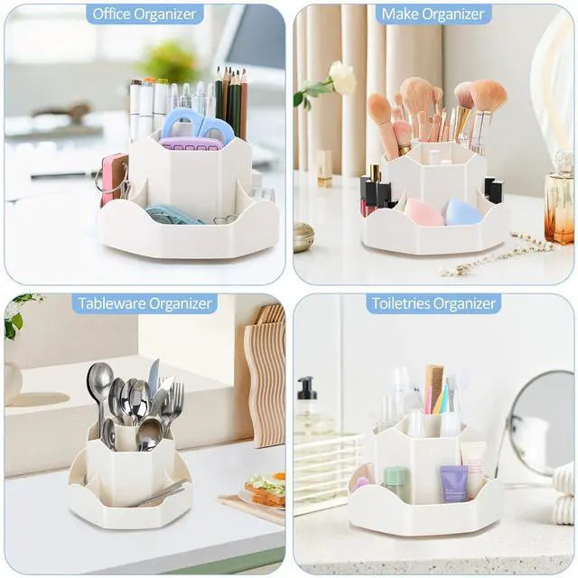 Widely Used: This rotating desk organizer can not only be used for storage on study/office desks, but also in daily life scenarios such as kitchens, living rooms, and vanity tables that require storage and savings