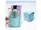 360 Degree Rotating Desk Organizer, 4 Slot Pencil Holder with Stickers, Multi-Purpose Cute Pen Pencil Cup for Make Up Brush Office School Home (Blue)