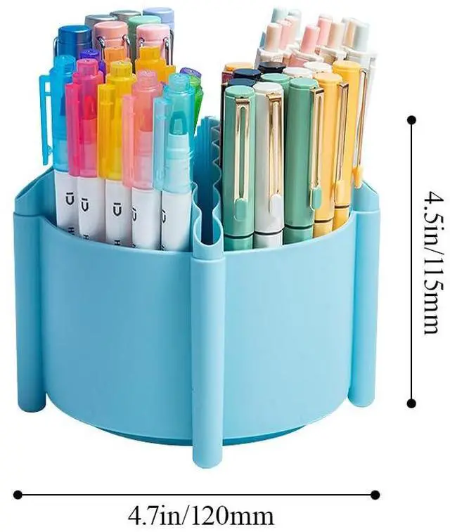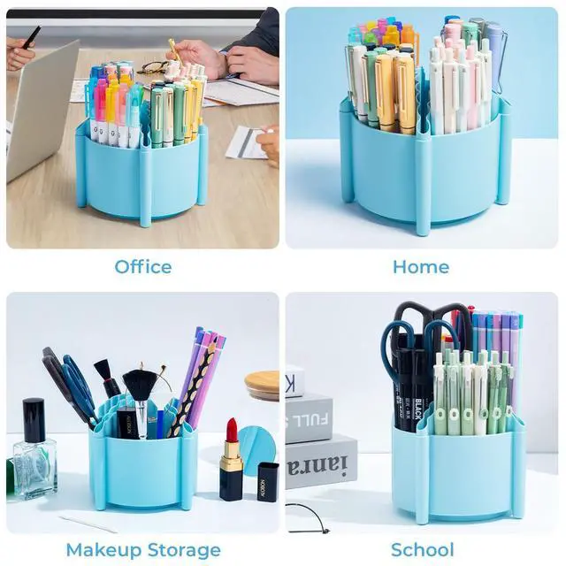 Durable Construction: The rotating pen holder for desk is made of sturdy ABS plastic, durable and waterproof. The corners are round and smooth, which does not hurt hands. This desk organizer is built to last through heavy daily use in offices, classrooms, craft rooms and more.