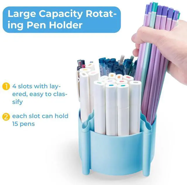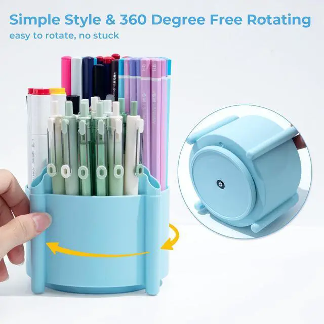360° Rotating Pen Holder for Desk Organizer: The rotating pen holder is equipped with a base that can rotate 360 degrees and it rotates smoothly without getting stuck. The rotary desk organizer design allows you to easily access your pens, pencils and other supplies from any angle.