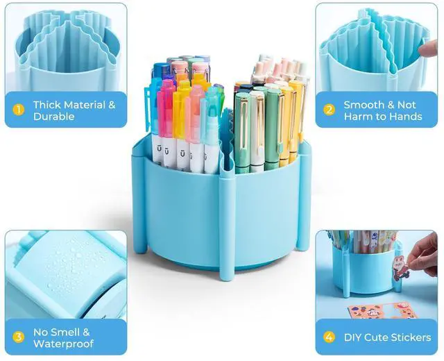 Cute & Compact Design: Each rotating pencil holder comes with a cartoon sticker, and you can DIY it by yourself. 4.7 inches in diameter, this space-saving pen cup fits neatly on any desktop, credenza or shelf, keeping supplies organized and within easy reach.