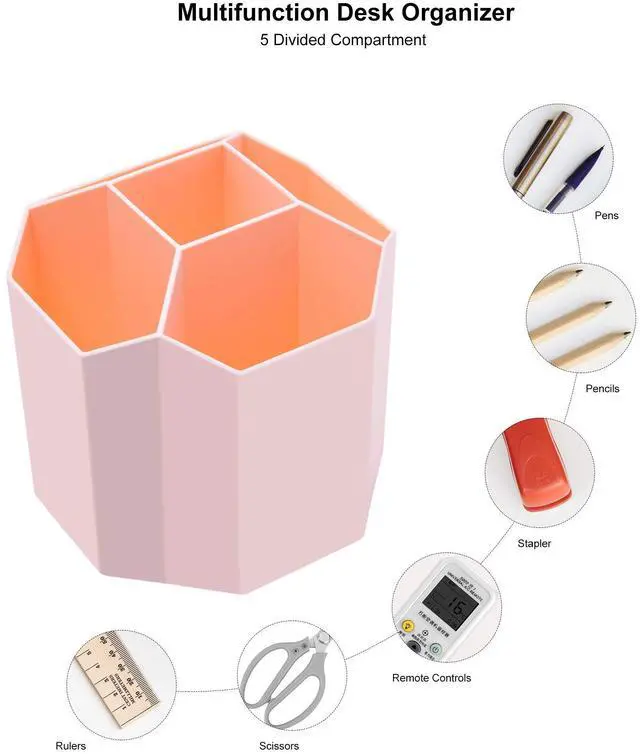 Space Saving: 5 compartments pen organizer is very convenient for storing and sorting small items such as pencils, markers, glasses, mobile phone, remote controls,erasers, file clips, scissors and so on, helping you to save space. Make your desk look more neatly and cleanly, no longer cluttered.