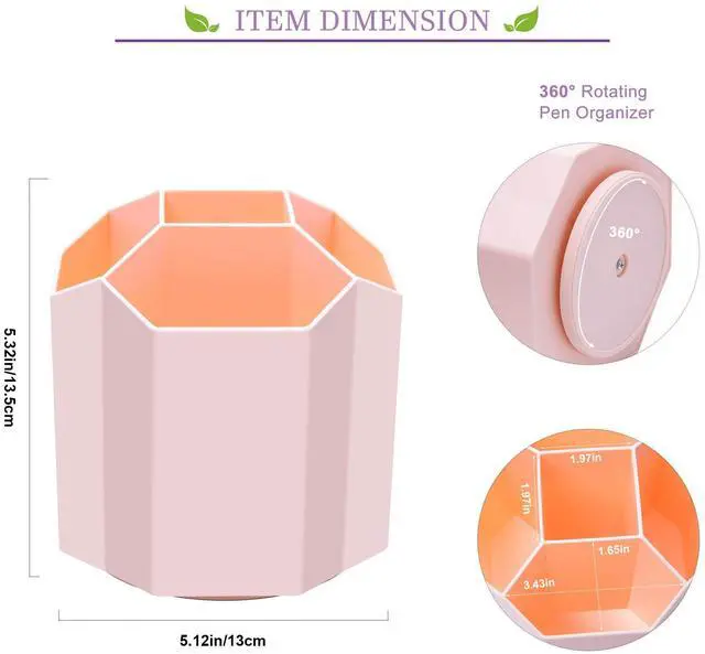 360 DEGREE ROTATION: This rotating pen holder can be turned up to 360 degree rotation, for easy access to desktop stuff or something useful and practical you need during working or studying period.