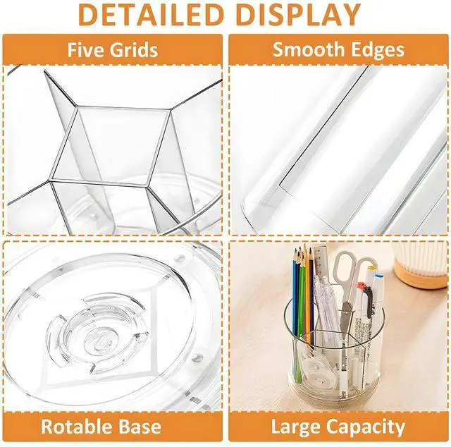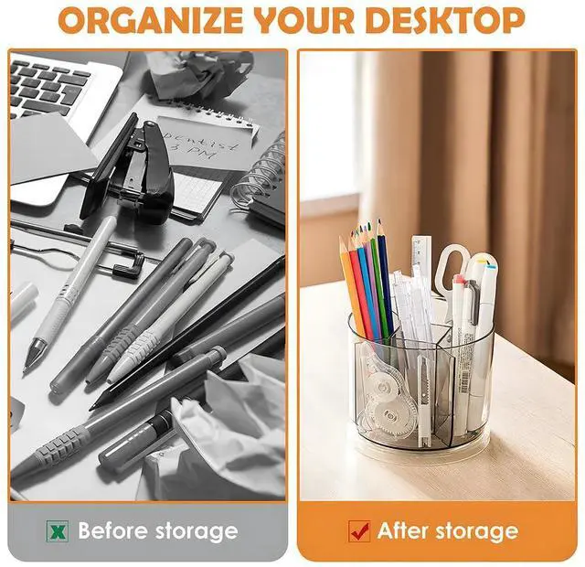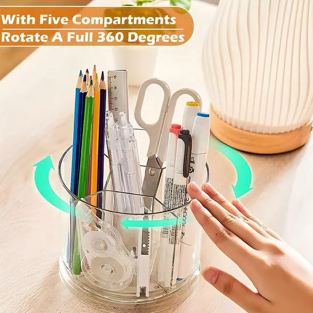 With 5 compartments that rotate a full 360 degrees, you can store pens, pencils, markers, scissors, and other small items neatly on your desk.