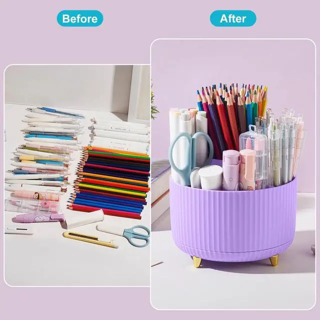 The 360° Rotating Desktop Organizer is the perfect solution for keeping your workspace neat and organized. With its smooth, effortless rotation, you can easily access pens, pencils, makeup brushes, and other essentials from any angle. Featuring a compact 5-compartment design, it offers versatile storage for office supplies, beauty tools, or small personal items. Made from durable, eco-friendly ABS material, this organizer is built to last while keeping your desk safe and clutter-free. Whether for your office, home, or vanity, it maximizes storage space without taking up extra room, making it a practical and stylish addition to any space. Plus, it makes a thoughtful gift for friends, family, or colleagues.