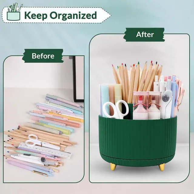 The 360° Degree Rotating Pencil Organizer can be utilized to store various kitchen essentials like cooking utensils, knives, and even small gadgets.