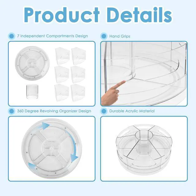 • 360° Rotation: Allows for easy access to all compartments with a smooth, effortless spin.