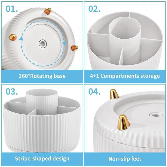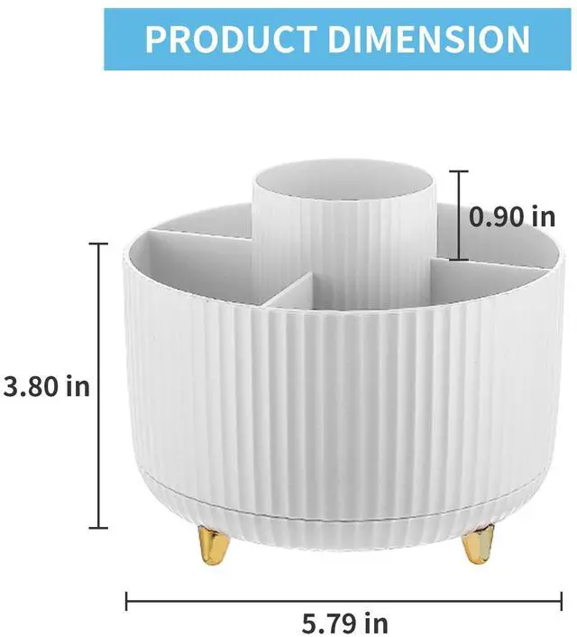 Marbrass's 5-compartment rotating desk organizer from our plastic collection is designed to store your office consumables in a sturdy compact desk organizer that feels at home in your office space or any space.