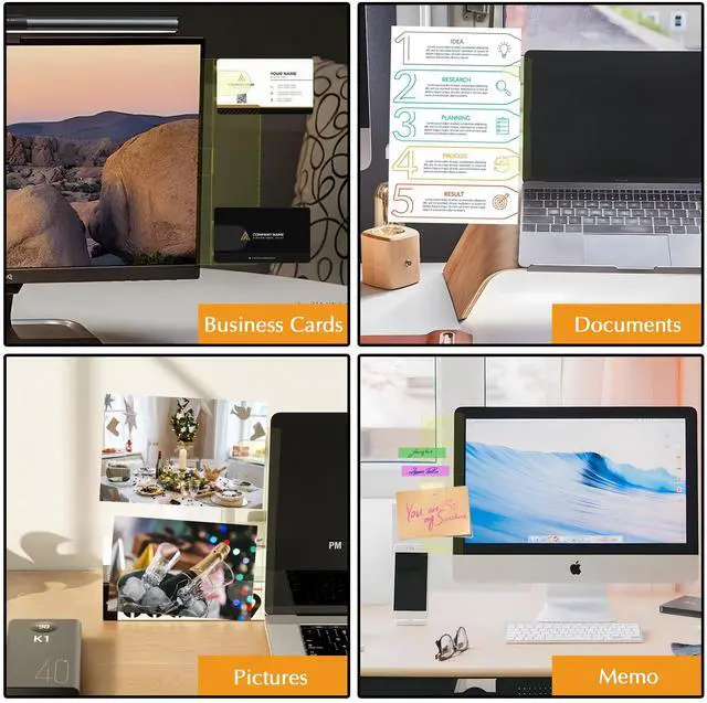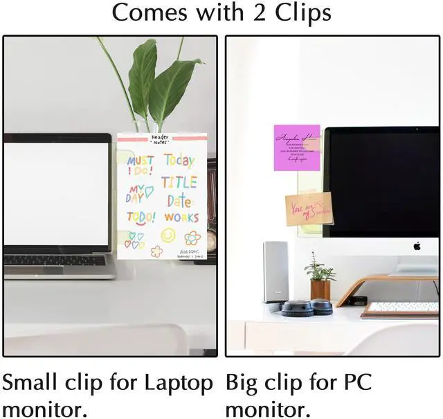 Compatible with Most MonitorsThis set includes 2 yellow transparent acrylic memo boards, each with a built-in clip for holding notes, memos, or small documents. Designed to attach easily to the sides of most computer monitors or laptop screens, the neutral gray blends seamlessly into your setup, keeping your workspace tidy and professional.