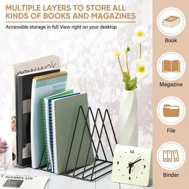 Measuring at a convenient size of 10.24 x 6.97 x 7.09 inches/ 26 x 17.7 x 18 cm, our triangle file holders give you ample space to store and organize your files, folders, magazines, books, and more. Keep your desk clutter free and manage your documents efficiently with our file holders.
